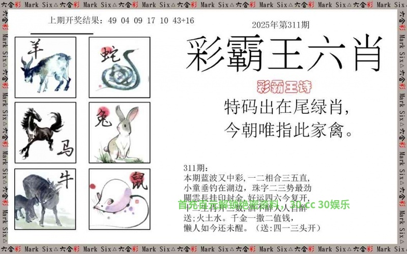 313期:正版彩霸王:九死一生后上发,蓝波双数就是它。 看生肖:今期送蓝波开的生肖 七肖:鼠猪虎兔鸡龙蛇 |